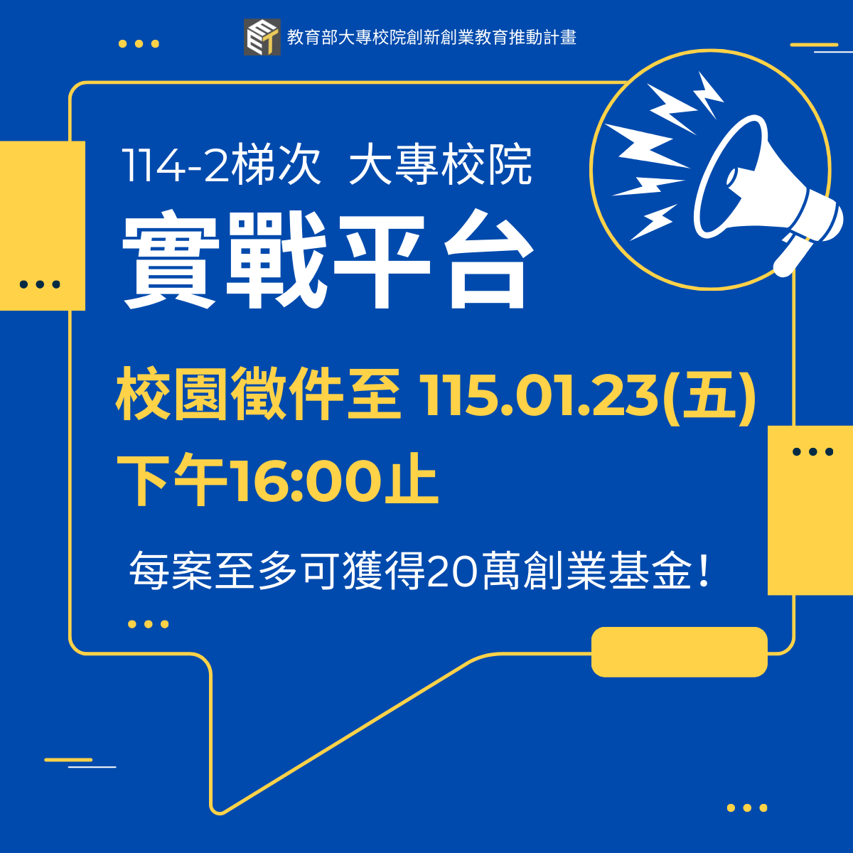 114-2教育部大專校院實戰平台,校園徵件截止至115.01.23(五)中午12:00止